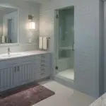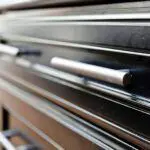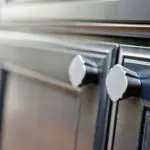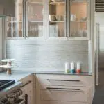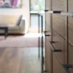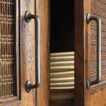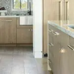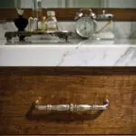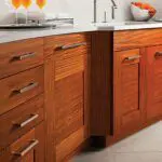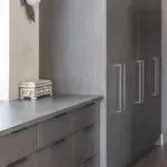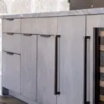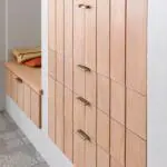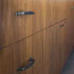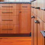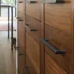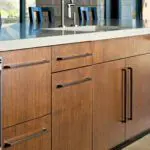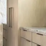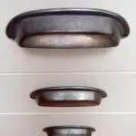Rectangular Flush Pulls (FP210) shown in white bronze, light patina.