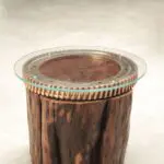 Flute Privacy escutcheon (E117) with the Flute knob (K10020) shown in silicon bronze, light patina.