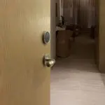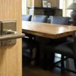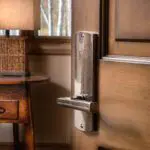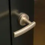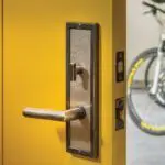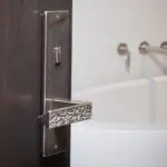 The Metro Collection with privacy indicator and the Olympus lever (L147) in white bronze, brushed patina.