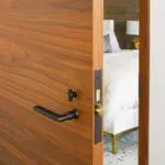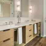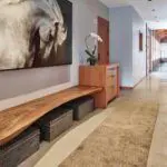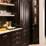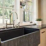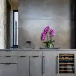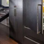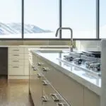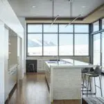 Perched on a mountainside near Sun Valley, ID, this home was built and designed to maintain a seamless integration of clean lines. To complement the contemporary aesthetic, interior designer Jennifer Hoey, adorned “jewels” to both the cabinets and doors with oversized Rail pulls on the cabinets and black leather Designer Collection door hardware. Hoey explained that the white bronze, dark patina finish chosen for all the hardware brought a vibrant texture to both the doors and cabinetry creating a luminous interior environment.Architect: McLaughlin & Associates Architects