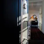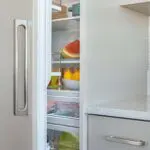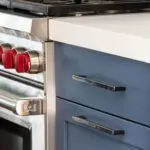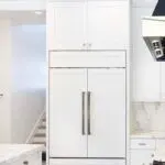 Ribbon and Reed grip (G622) used as a refrigerator pull, shown in white bronze, dark patina.