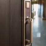Metro entry set (G201, G202) with the Rail grip (G265) shown in white bronze, brushed patina