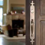 Multi-point entry set shown with the Briggs escutcheon (E10873) and Legacy lever (L109), shown in silicon bronze, rust patina.