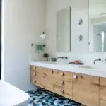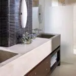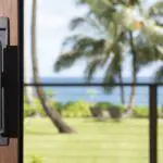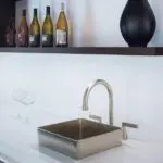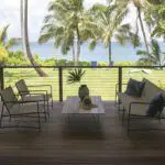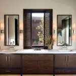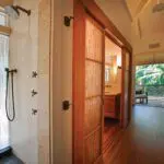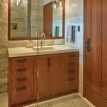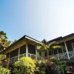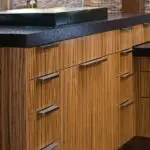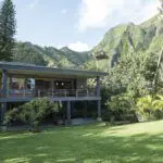 This tropical home on Hanalei Bay features modern details and hardware throughout. Tucked into the foothills of the Napali Coast, the home’s aesthetic blends teak wood and other natural elements of the area with Rocky Mountain Hardware sinks and faucets, cabinetry, door hardware and hinges. Photographer Damon Moss.Designer: Gary Tobey and Design Concepts
