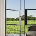 This remote Croy Canyon, Idaho residence is a bold representation of mid-century architecture. Both timeless and unique, this home, built by Sawtooth Builders, features a harmonious blend of stone, glass, cork, wood, and Rocky Mountain Hardware hand-cast bronze design elements. Our Branch Grip placed on the home’s contemporary paneled front door provides an organic, welcoming touch to the lofty entryway. Our Organic Square Grips, finished with a White Brushed patina, lend natural texture and shape in a unique application. Endlessly adaptable, here they are positioned horizontally on doors featuring soft-close roller catches. Simply presented with a cool color palette, this home is a dynamic ode to modern minimalism.Builder: Sawtooth Builders