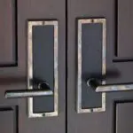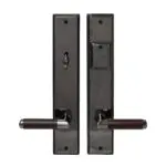 Rectangular Sliding Door Set (E446) with Offset levers (L124) on shown in silicon bronze, dark patina.
