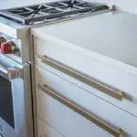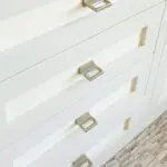 Cassandra LaVelle, lifestyle and design blogger, remodeled her Seattle home and incorporated our hardware throughout. The home was built in the 1920’s and was due for a major update. They went for a “traditional meets modern farmhouse” look by using our Rail cabinet pull, Luna cabinet knob and Empire bin cabinet pull in silicon bronze, brushed patina to contrast the bright white cabinets. The space is simple, bright and airy, which makes our hardware a standout piece in this home.Designer: CASSANDRA LAVELLE