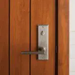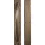 Corbel Arched entry escutcheon (G30633) with the Pillar grip (G30168) shown in white bronze, medium patina.