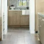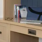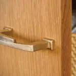 Rectangular flush pull (FP204) with Edge Pull (EP100) in white bronze, brushed patina.