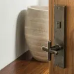 Atop a ledge in Salt Lake City, Utah sits a stunning example of bronze’s versatility and the ability of Rocky Mountain Hardware collections to intermingle with other design elements in unique ways. The chic dark tones of this home’s exterior are a perfect contrast to the bright and colorful interior design, which is accentuated with striking pops of gold. Featuring hardware from many of our collections, this home is a joyous medley of influences and design elements. In the kitchen alone, you can see pieces from famed hotel designer Roger Thomas’ Flute Collection mingling with selections from highly acclaimed designer Ted Boerner. Through this diverse design aesthetic, a unified patina brings each element together seamlessly.