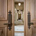 This Spanish Mediterranean style home nestled above the ocean in the Pacific Palisades boasts classic elegance. The eclectic interior reflects old world European ambiance with antique lighting fixtures sourced from street lights in Toulouse, France to wood beams from 20th century barns, and a 17th century reclaimed fireplace mantel from France. Adorning the interior doors and cabinetry is the Roger Thomas Paris Collection from Rocky Mountain Hardware, which was selected as the perfect complement to the refined, old world decorative elements.Architect: RLB Architecture - Richard Blumenberg, AIA