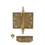 Thumblatch entry set with the Fleur De Lis escutcheon (G841) and Sun Valley grip (G606). Shown in silicon bronze, light patina.