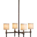 Positioned on two ponds with coveted views of the ocean, this one-story Martha's Vineyard home blends effortlessly with its abundant natural surroundings. No detail was spared in the design, handcrafted custom and main-line RMH lighting are appointed throughout the home. Charlie pendants and a custom double-cubed chandelier hang from the curved ceiling in the kitchen and bronze sconces are mounted in the halls and bathrooms. Photos by Brian Vanden Brink PhotographyArchitect: Peter Breese, Breese Architects