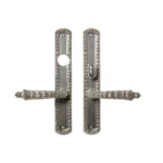 Multi-point set with the Rectangular escutcheon (E447) and Beaver Tail lever (L105), shown in white bronze, medium patina.