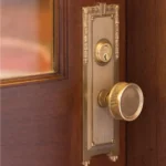 Passage Set with the Roger Thomas Collection, Paris escutcheon (E10015) and Quatrafoil knob (K10010), shown in silicon bronze, rust patina.