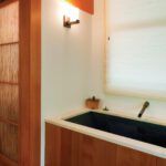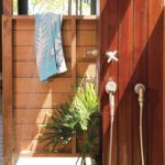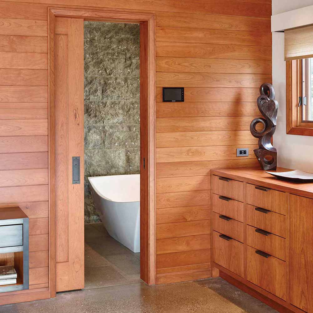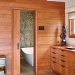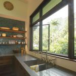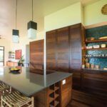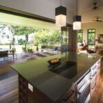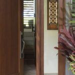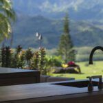 This tropical home on Hanalei Bay features modern details and hardware throughout. Tucked into the foothills of the Napali Coast, the home’s aesthetic blends teak wood and other natural elements of the area with Rocky Mountain Hardware sinks and faucets, cabinetry, door hardware and hinges. Photographer Damon Moss.Designer: Gary Tobey and Design Concepts