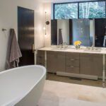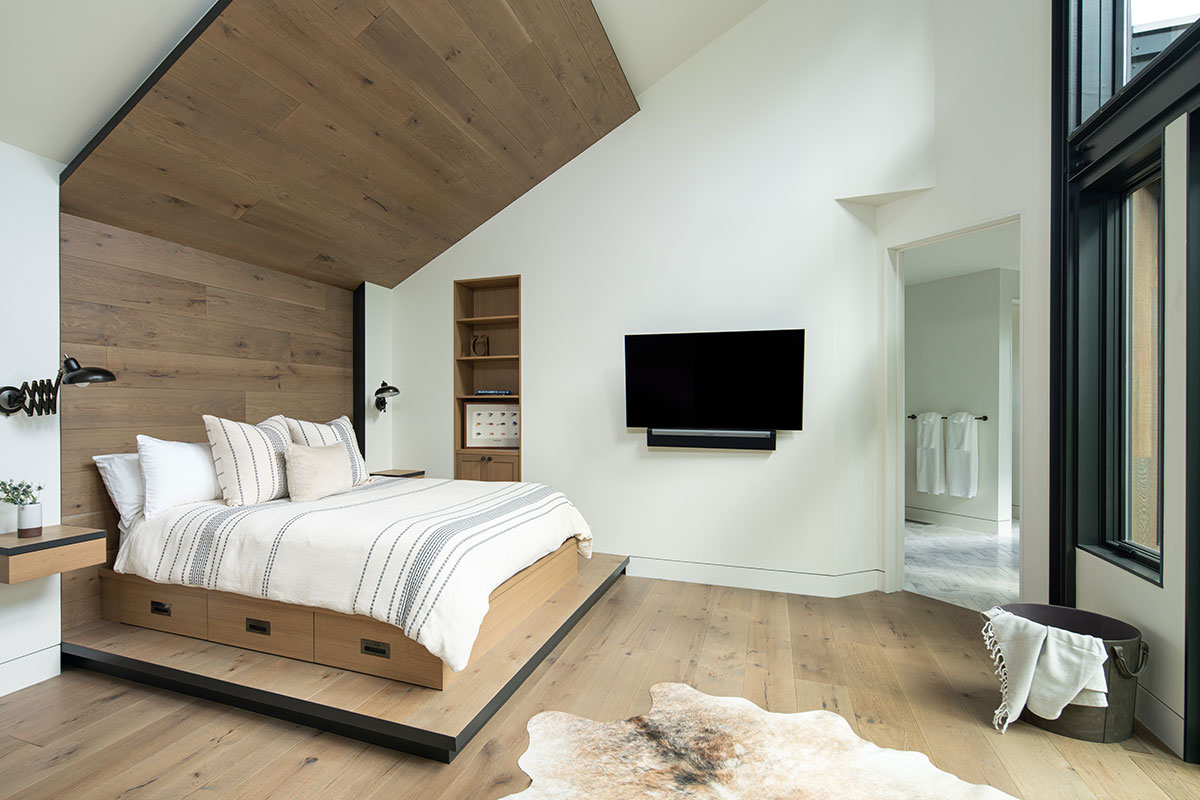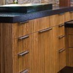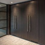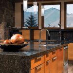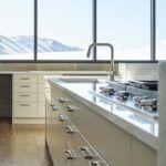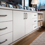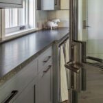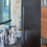Perched on a mountainside near Sun Valley, ID, this home was built and designed to maintain a seamless integration of clean lines. To complement the contemporary aesthetic, interior designer Jennifer Hoey, adorned “jewels” to both the cabinets and doors with oversized Rail pulls on the cabinets and black leather Designer Collection door hardware. Hoey explained that the white bronze, dark patina finish chosen for all the hardware brought a vibrant texture to both the doors and cabinetry creating a luminous interior environment.Architect: McLaughlin & Associates Architects