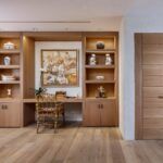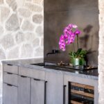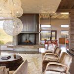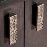 This remote Croy Canyon, Idaho residence is a bold representation of mid-century architecture. Both timeless and unique, this home, built by Sawtooth Builders, features a harmonious blend of stone, glass, cork, wood, and Rocky Mountain Hardware hand-cast bronze design elements. Our Branch Grip placed on the home’s contemporary paneled front door provides an organic, welcoming touch to the lofty entryway. Our Organic Square Grips, finished with a White Brushed patina, lend natural texture and shape in a unique application. Endlessly adaptable, here they are positioned horizontally on doors featuring soft-close roller catches. Simply presented with a cool color palette, this home is a dynamic ode to modern minimalism.Builder: Sawtooth Builders