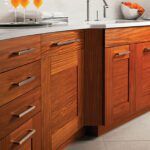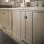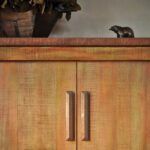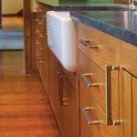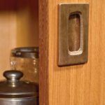 Rectangular Flush Pulls (FP210) shown in white bronze, light patina.