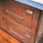 Tube cabinet pulls (CK492), shown in silicon bronze, dark patina.