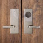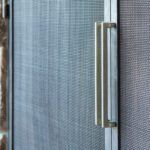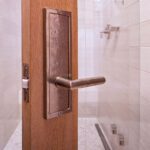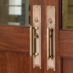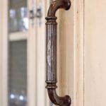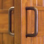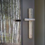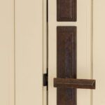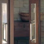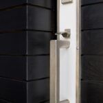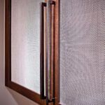 Push/Pull set (G135) shown with the Tuft texture and Summit Grip (G280). The Tuft texture and swing cover are white bronze, light patina and the grip and frame are white bronze, medium patina.