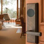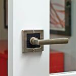 The Metro Collection with privacy indicator and the Olympus lever (L147) in white bronze, brushed patina.