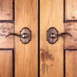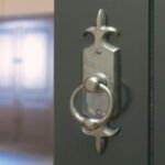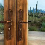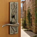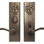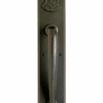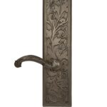 Fleur de Lis Thumblatch entry (G841) shown with the Sun Valley grip (G606) in silicon bronze, light patina.