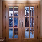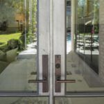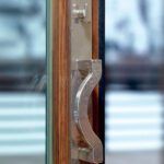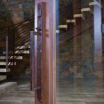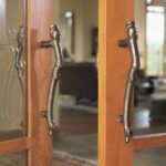 Smith Grip (G30148) mounted back to back on plate glass door, shown in silicon bronze, lustre patina.