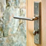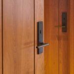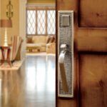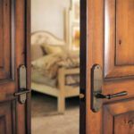 The Rail cabinet pull (CK260) and the Stepped Multi-Point passage set shown with the French lever (L117) in silicon bronze, dark lustre finish.