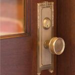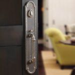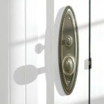 Convex passage set (E30508) with Reed Lever (L304) shown in white bronze., light patina.