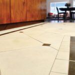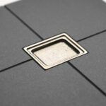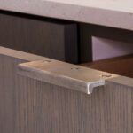 Rectangular flush pull (FP204) with Edge Pull (EP100) in white bronze, brushed patina.