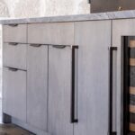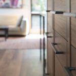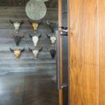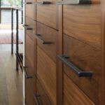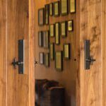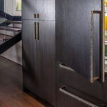 A stunning picture window overlooking the East Fork Wood River and a modern glass wine cellar are just a few of the notable highlights inside this East Fork, Idaho remodel. The homeowner, who had fallen in love with the secluded location was drawn to our handcrafted hardware and chose early on in the project to feature Rocky Mountain Hardware prominently. The simple and clean lines of our Metro Collection, punctuated by Rail Grips, are thoughtfully incorporated throughout the home. Each handle and escutcheon is finished with our striking Bronze Dark Luster patina, which demonstrates how a cohesive finish can bring together eclectic design elements. It’s a testament to the organic and perfectly imperfect nature of bronze, and its ability to stand out against a variety of surfaces and color selections. The builder on the remodel was Lee Gilman Builders, the interior designer was Latham Interiors.Designer: Latham Interiors