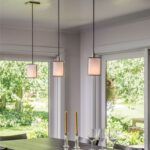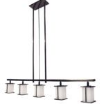 Positioned on two ponds with coveted views of the ocean, this one-story Martha's Vineyard home blends effortlessly with its abundant natural surroundings. No detail was spared in the design, handcrafted custom and main-line RMH lighting are appointed throughout the home. Charlie pendants and a custom double-cubed chandelier hang from the curved ceiling in the kitchen and bronze sconces are mounted in the halls and bathrooms. Photos by Brian Vanden Brink PhotographyArchitect: Peter Breese, Breese Architects