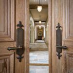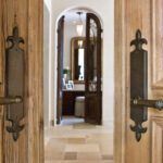 This Spanish Mediterranean style home nestled above the ocean in the Pacific Palisades boasts classic elegance. The eclectic interior reflects old world European ambiance with antique lighting fixtures sourced from street lights in Toulouse, France to wood beams from 20th century barns, and a 17th century reclaimed fireplace mantel from France. Adorning the interior doors and cabinetry is the Roger Thomas Paris Collection from Rocky Mountain Hardware, which was selected as the perfect complement to the refined, old world decorative elements.Architect: RLB Architecture - Richard Blumenberg, AIA