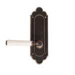 French lever (L117) on Stepped escutcheon (E312) shown in silicon bronze, dark patina