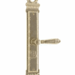 Bordeaux escutcheon (E30862) shown with the Chateau lever (L30180), shown in silicon bronze, light patina.