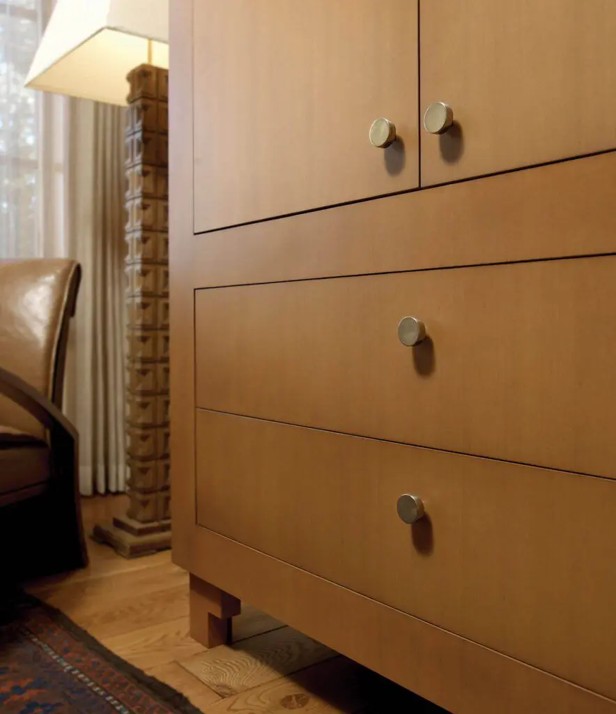 The Tube cabinet knob (CK239) shown in silicon bronze, light patina.