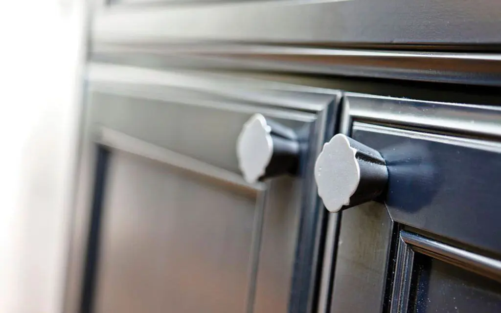Egg cabinet knob (CK303) and the Twig cabinet pull (CK327) shown in silicon bronze, dark lustre patina.