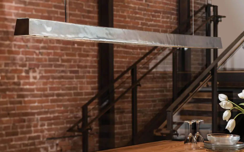 Linear Chandelier (C420), shown in silicon bronze, dark lustre patina.
