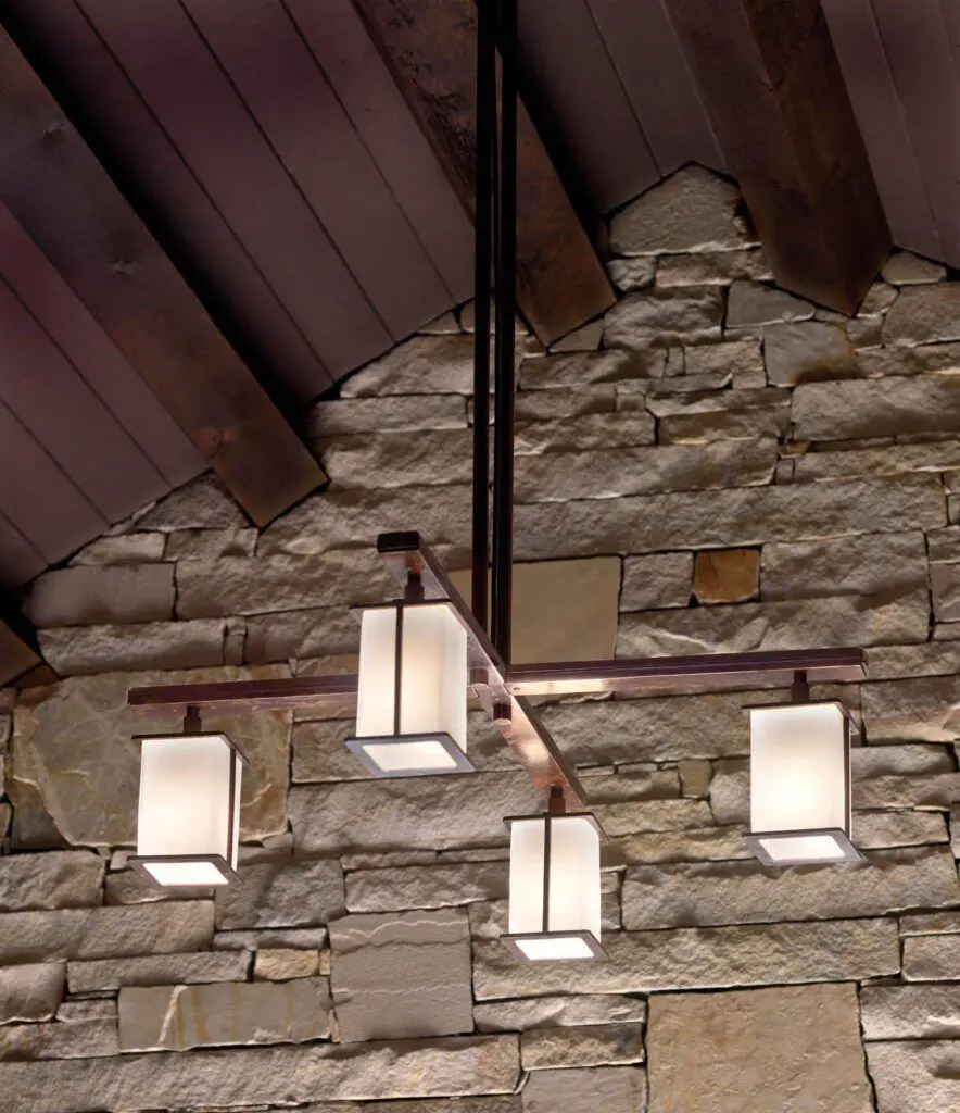 Cross Arm chandelier with Square glass (C455), shown in silicon bronze, rust patina.