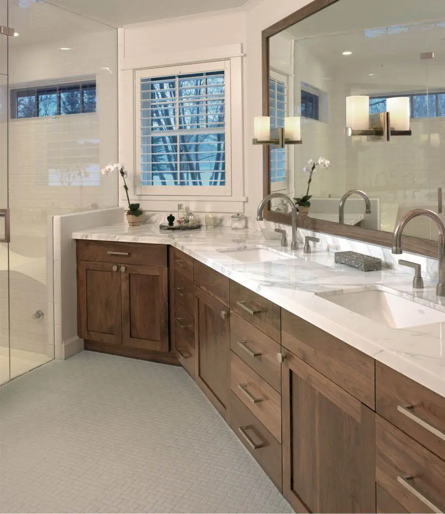 Olympus cabinet pulls (CK359) and Olympus grips (G661) shown in silicon bronze, dark lustre patina. The Alpha pendant (PE455) with custom glass, custom socket covers, custom bulbs shown in silicon bronze, dark lustre patina. Kitchen Deck Mount faucet (DMF) with Arched spout (P700) with the Cross knobs (K235) and the Quadra sink (SK422) shown in white bronze, light patina.