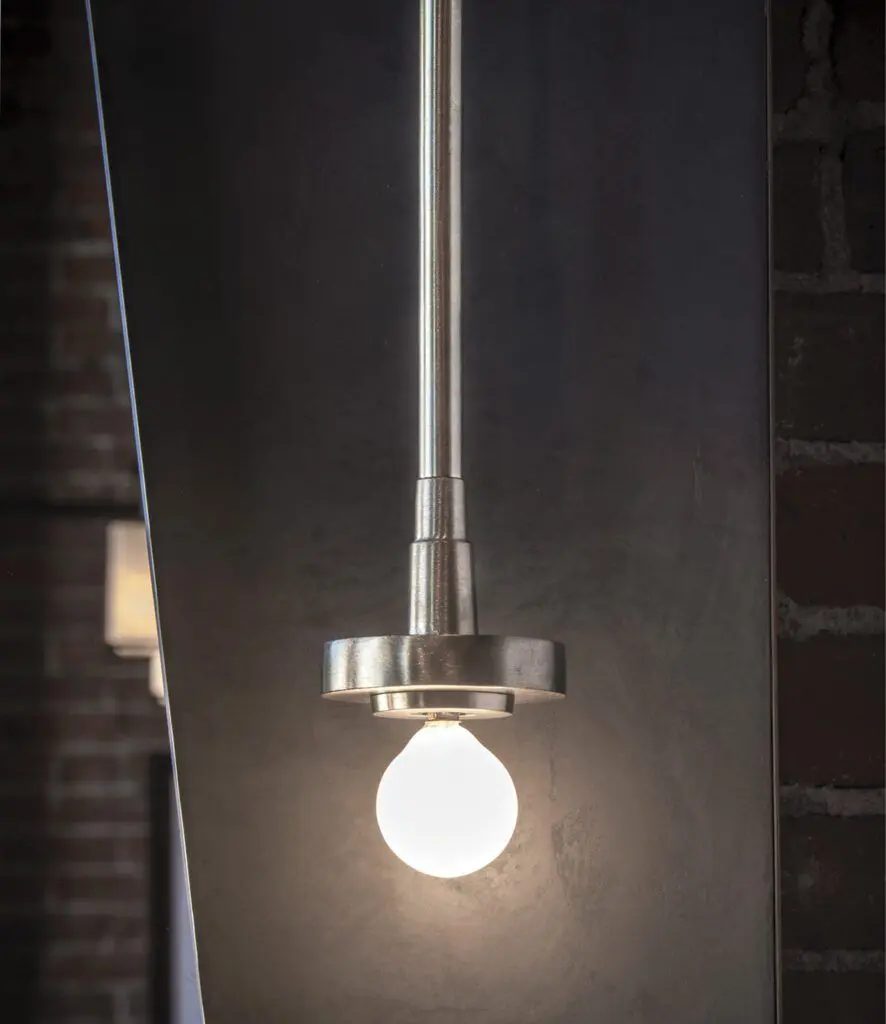 Alpha Pendant (PE455) shown with Square Escutcheon (E403) shown in white bronze, brushed patina.