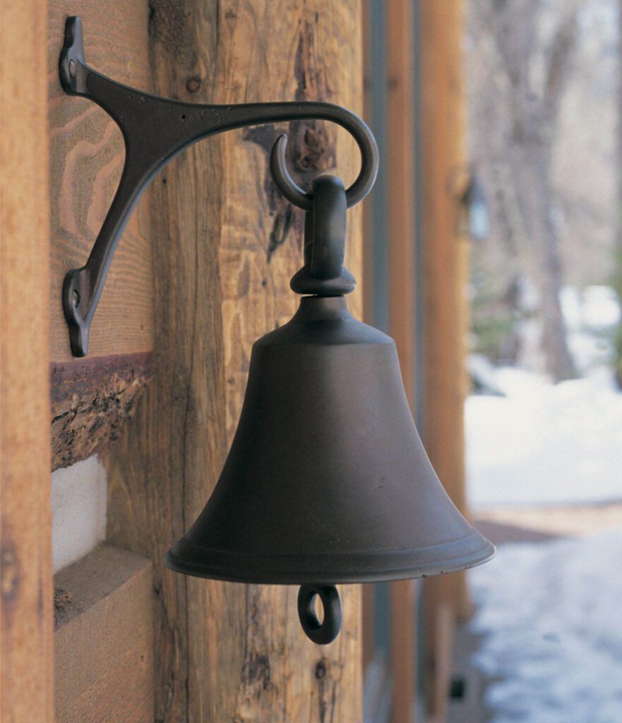Our large cast bronze bell (B12) is shown here in silicon bronze, dark patina.