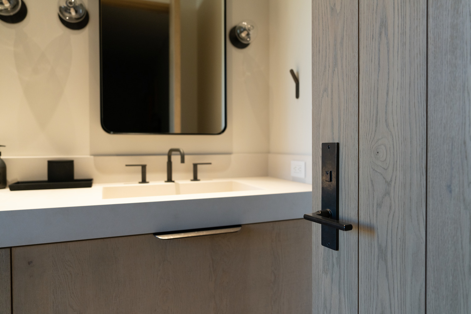 Modern mountain architecture emphasizes clean geometry and quiet restraint. Smooth textures and minimalist forms from Rocky Mountain Hardware create visual continuity that allows materials and light to take center stage.