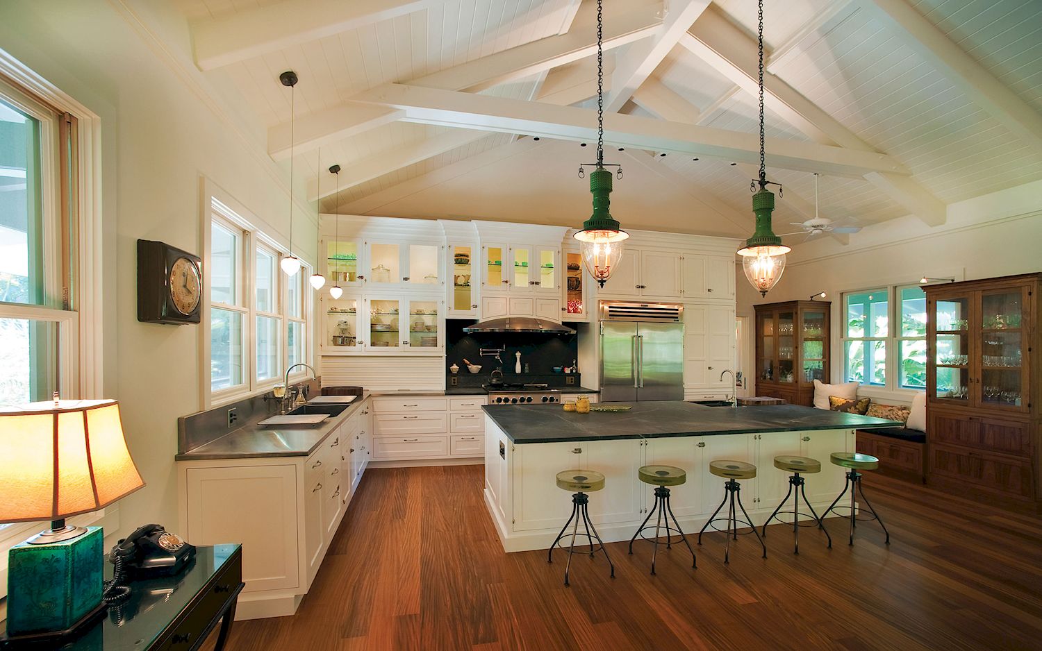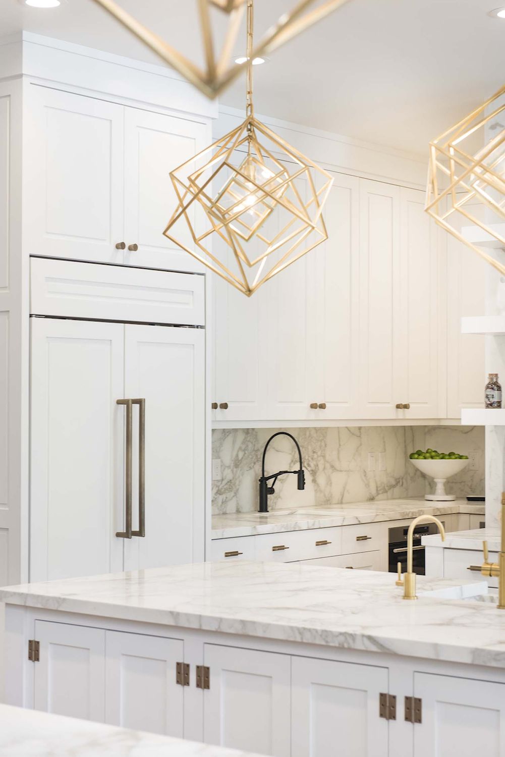 - Kitchen featuring Roger Thomas Collection Quatrafoil cabinet knobs (CK10011, CK10010), Paris pull (CK10050) and Offset Curved Rail grip (G260) shown in white bronze, brushed.