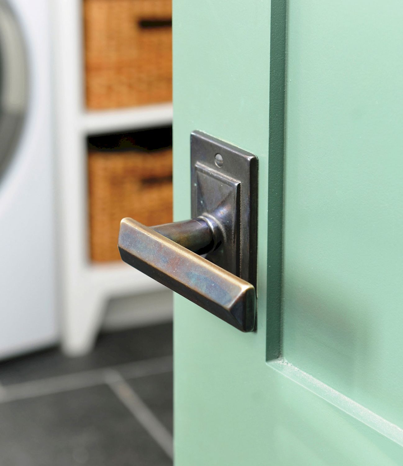 - The Rail cabinet pull (CK260), Catch cabinet pull (CK213), Rail grip (G265) and the Stepped Multi-Point passage set shown with the French lever (L117) in silicon bronze, dark lustre finish.