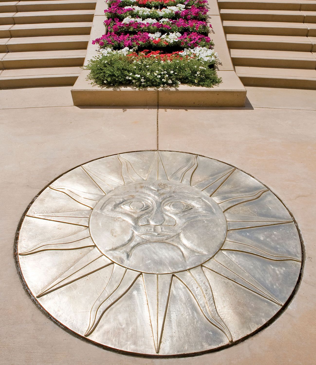 - Custom 5 ft. diameter sun medallion. Shown in silicon bronze, light patina.