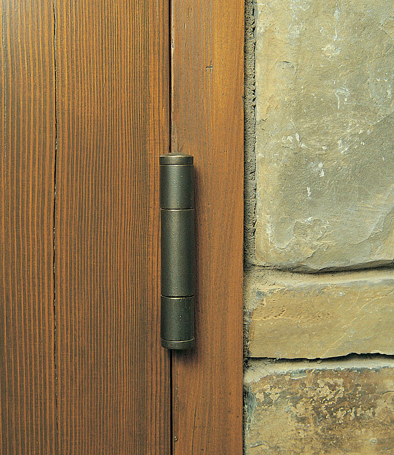 4" x 4" concealed bearing hinge (HNG4) with the Standard finial cap, shown in silicon bronze, rust