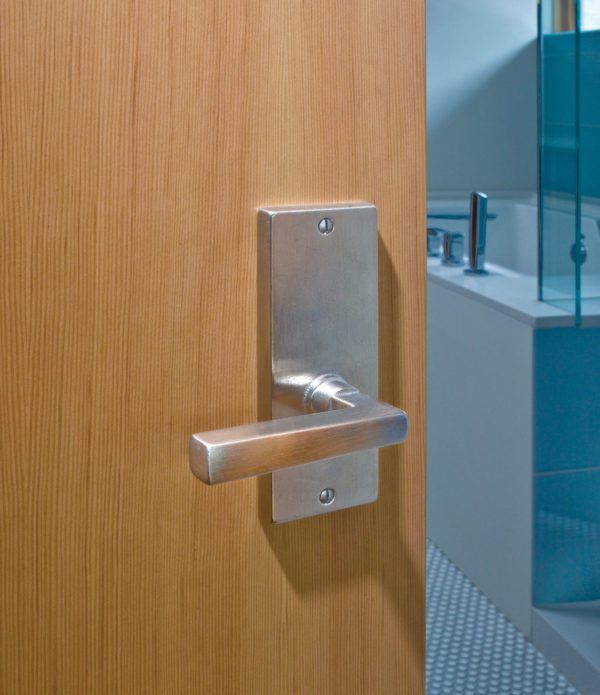 Charlie pendants (PE435) with wall mount faucet (WMF) with Mini Reed levers (LB30), Quadra sink (SK422), 7" towel ring (TR7) and 12" Sash grips (G612) mounted for towel bars, all shown in white bronze, light patina.